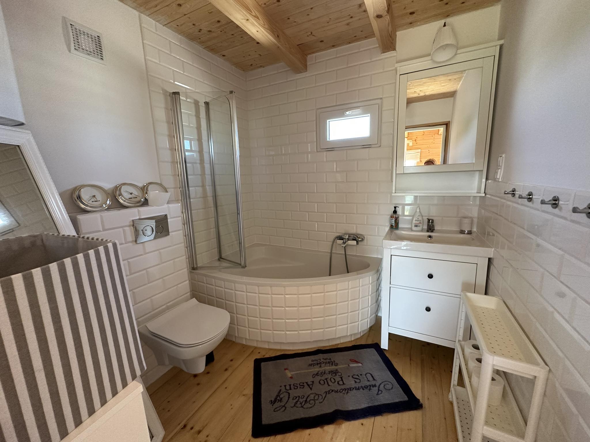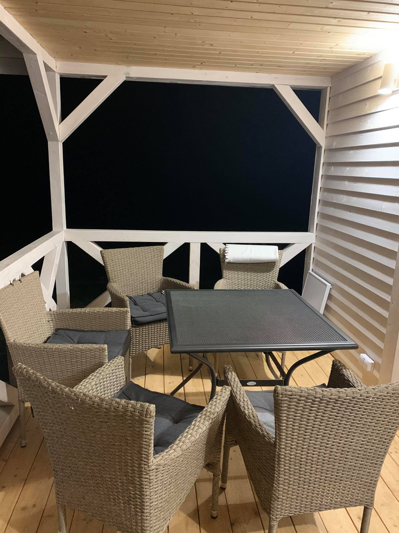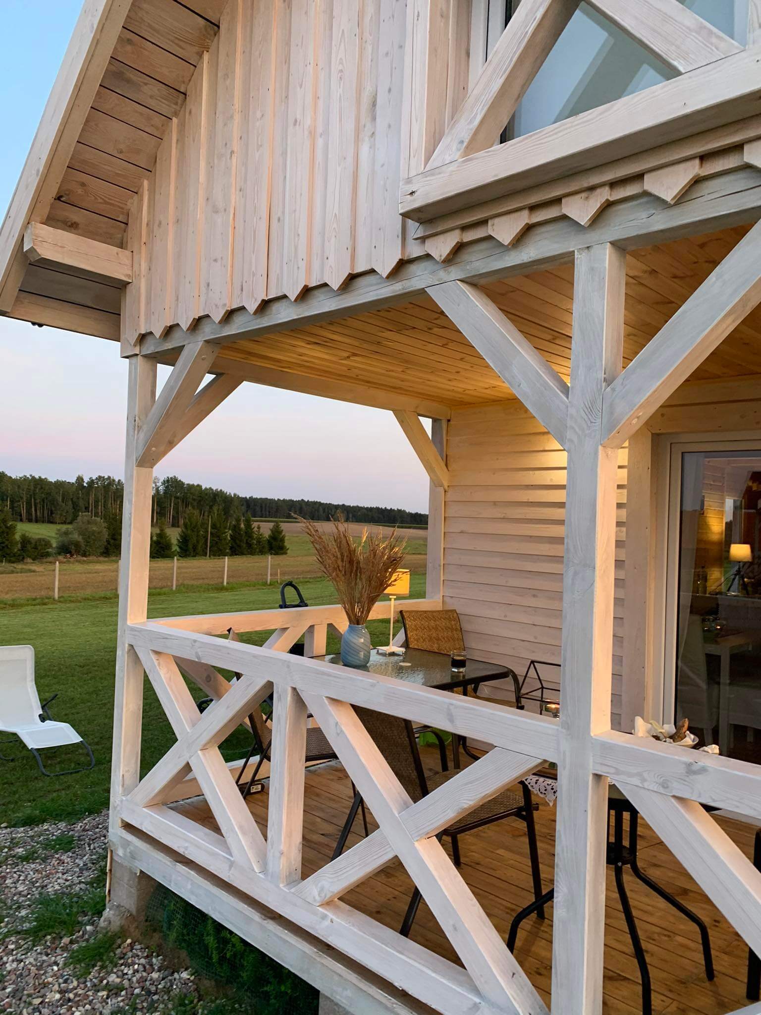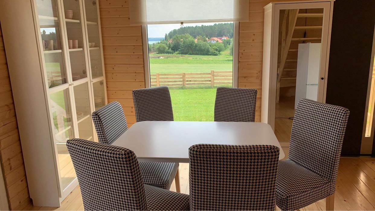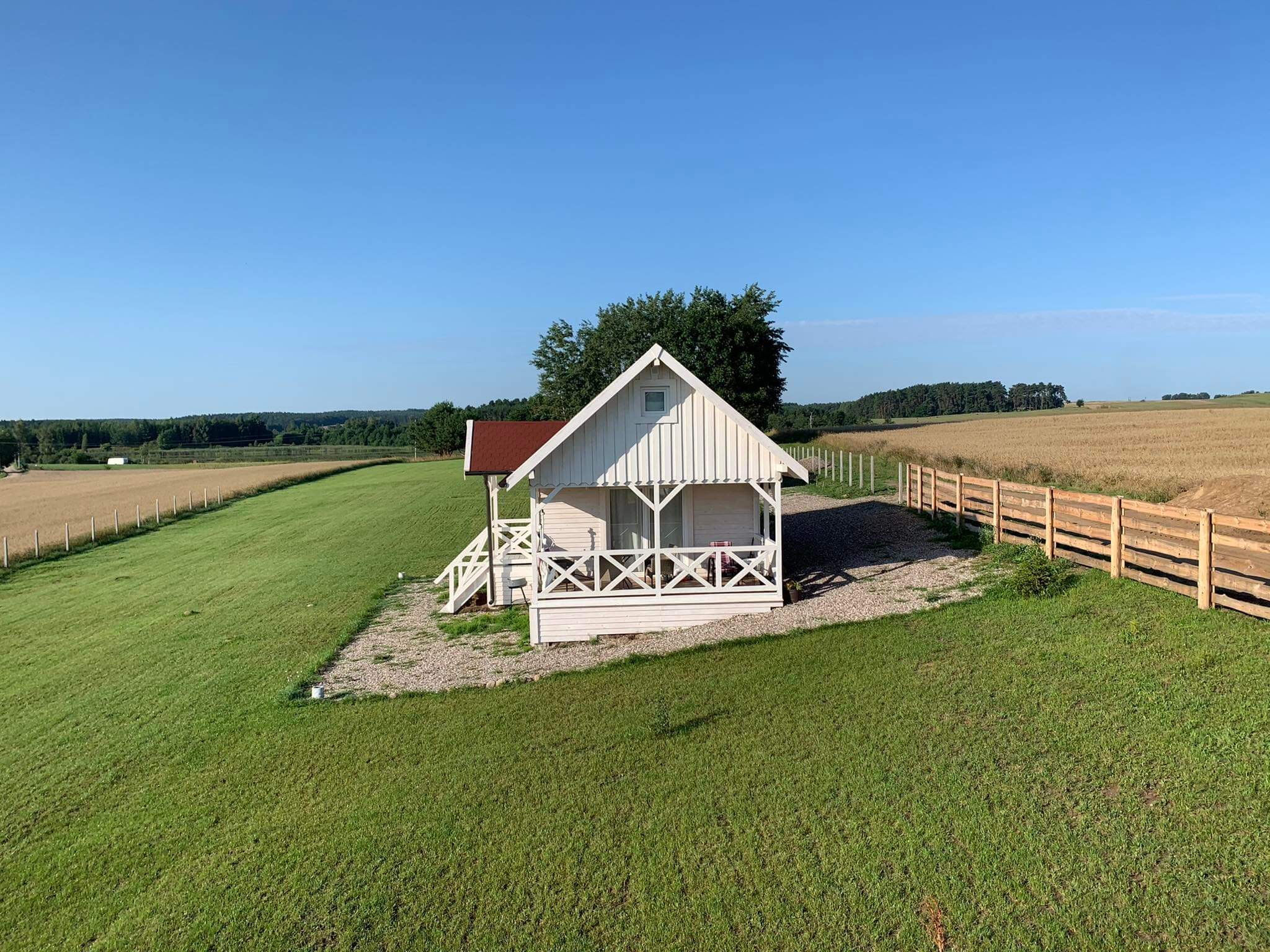 Drewniane domki letniskowe, 1-6 osobowe, pow 70m2. Do dyspozycji gości parter: salon z rozkładaną sofą, stół z krzesłami, aneks kuchenny wyposażony w lodówkę, zmywarkę, czajnik, kuchenkę gazową, naczynia. Oddzielny taras z meblami ogrodowymi. Piętro: 2 sypialnie dwuosobowe.