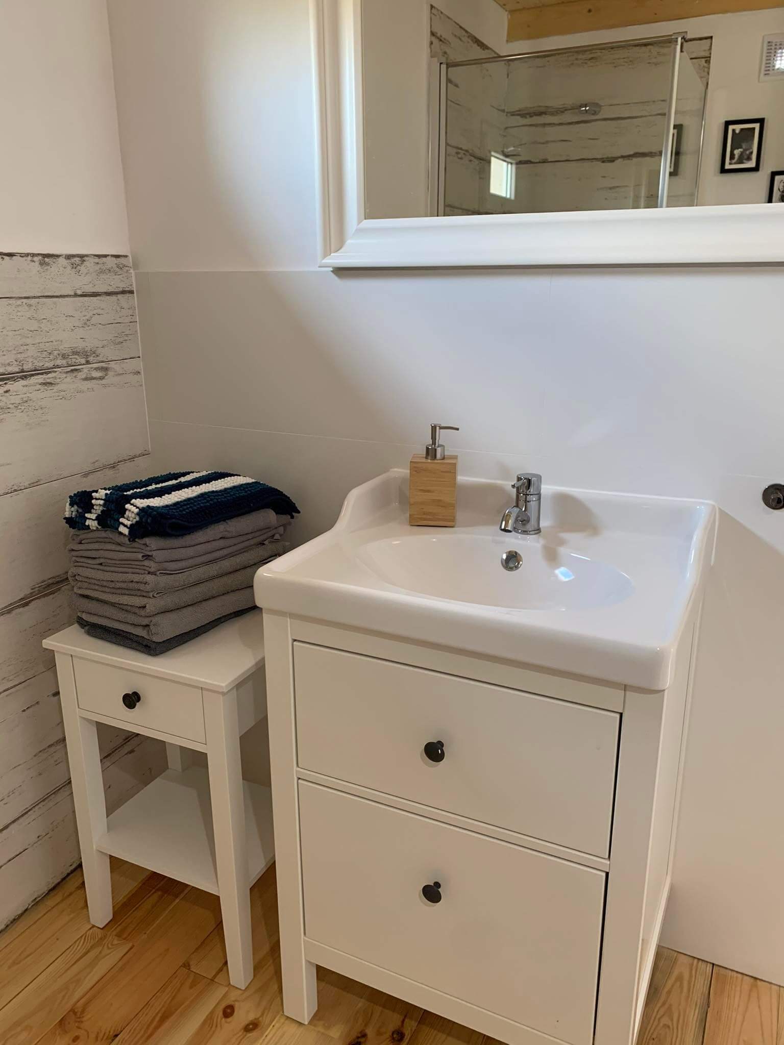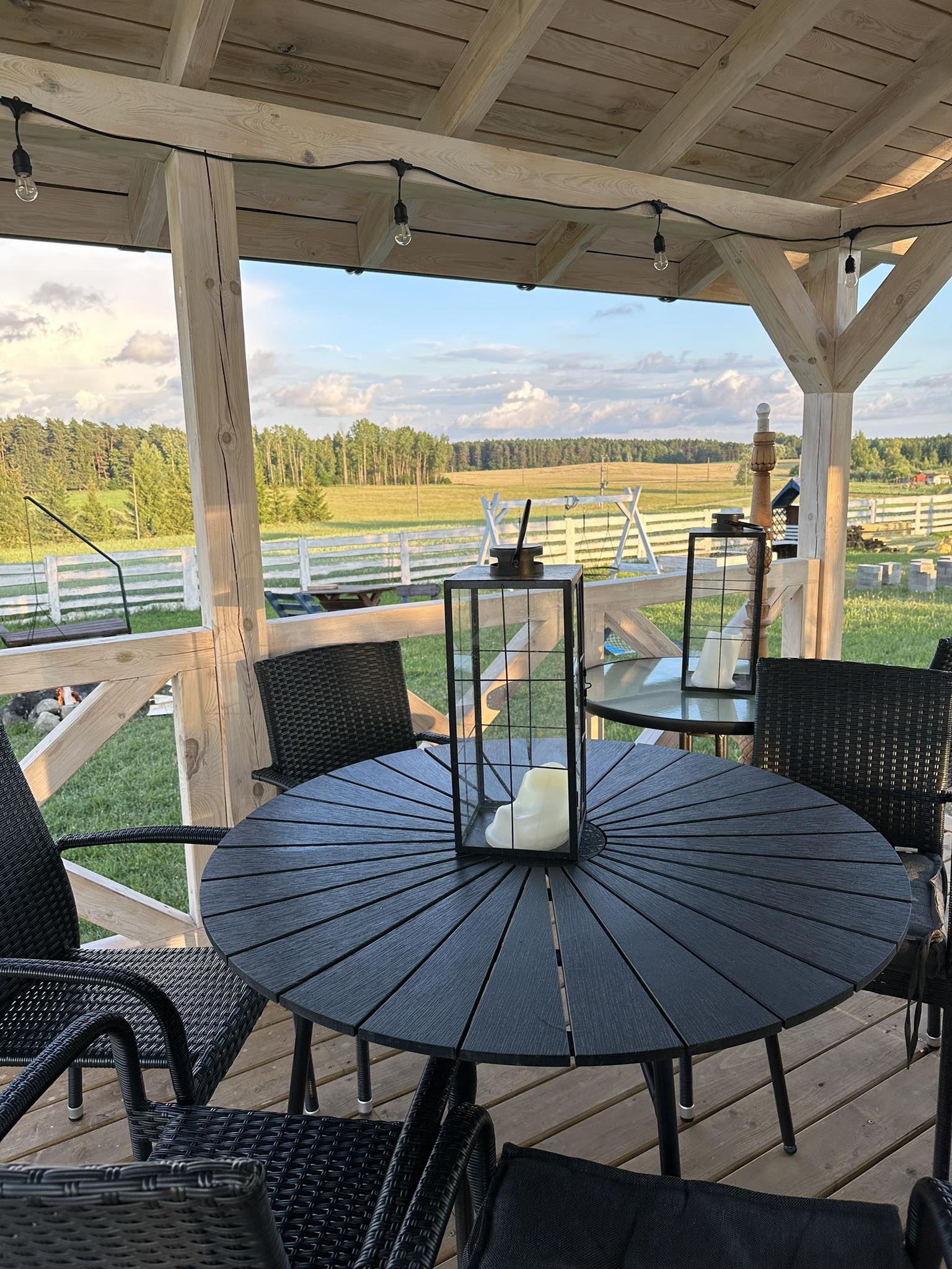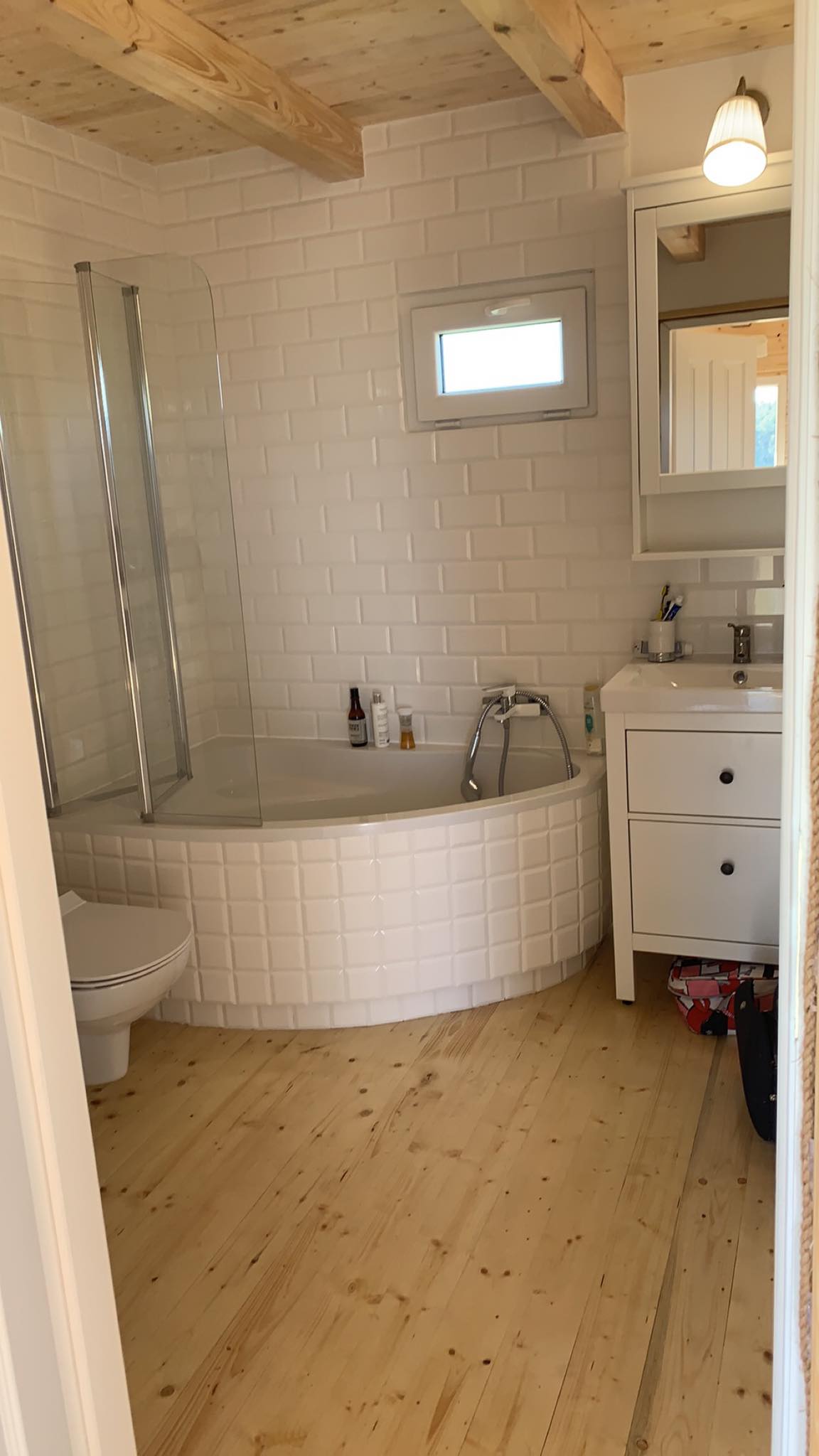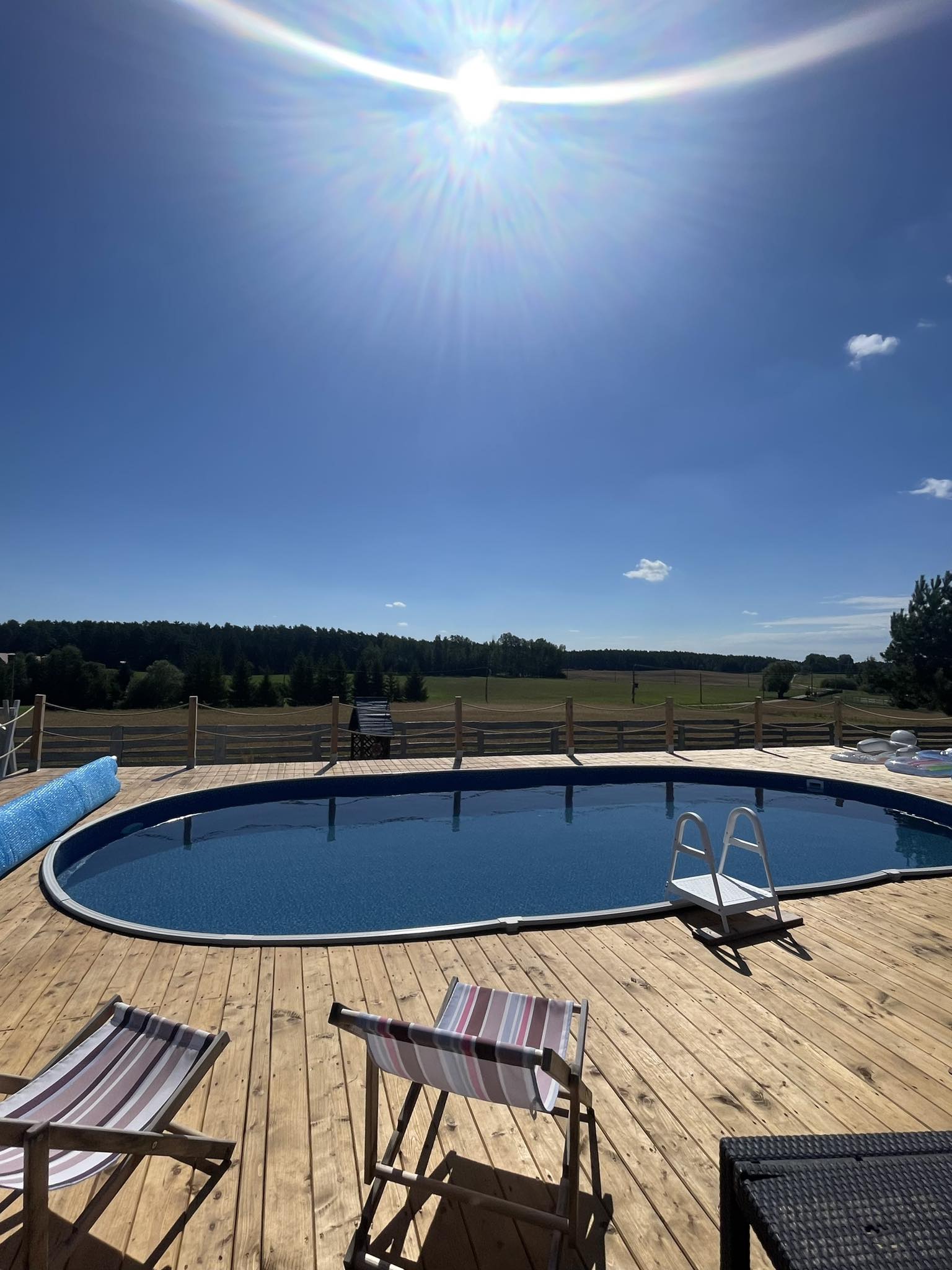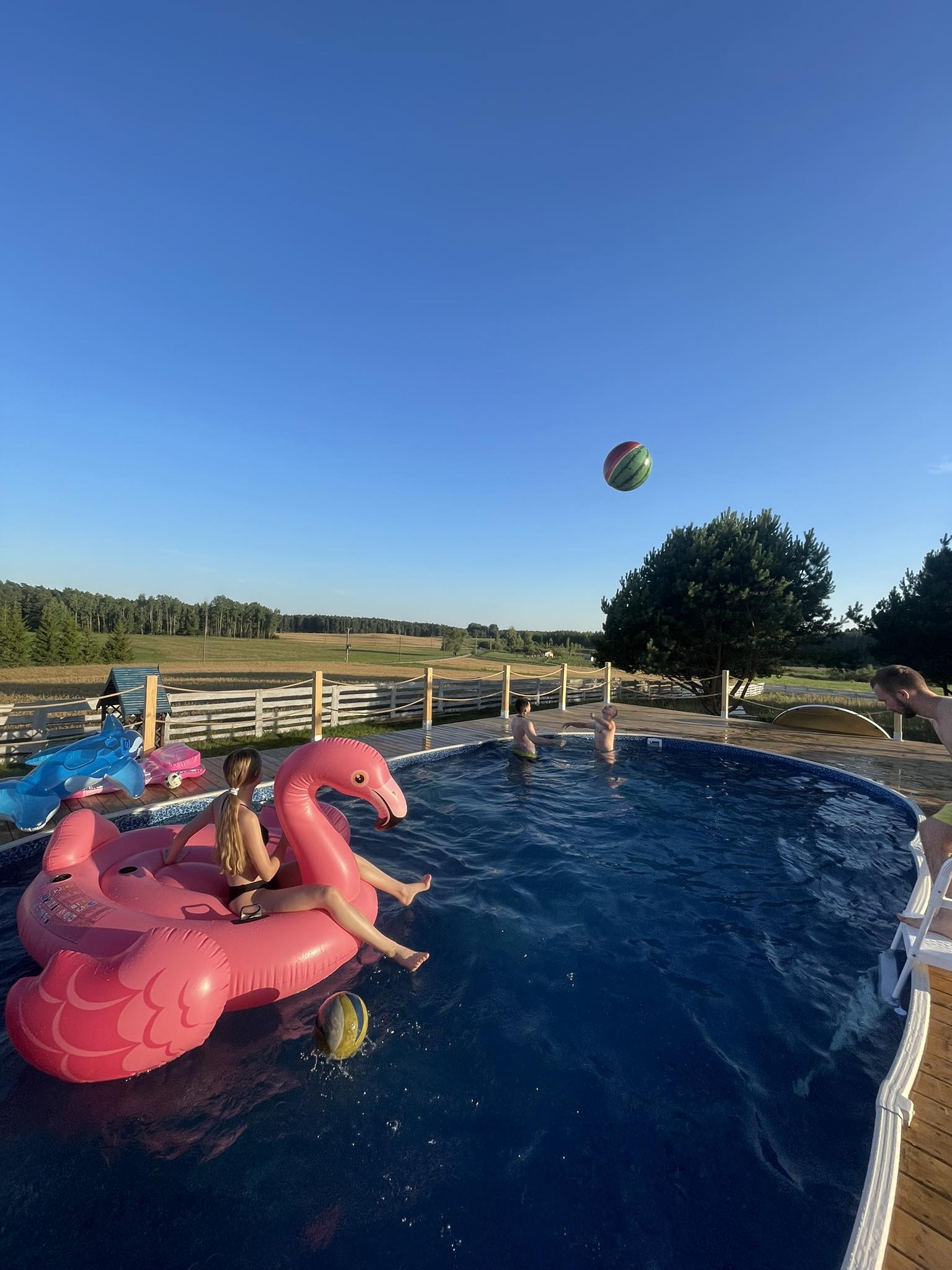 Drewniane domki letniskowe, 1-6 osobowe, pow 70m2. Do dyspozycji gości parter: salon z rozkładaną sofą, stół z krzesłami, aneks kuchenny wyposażony w lodówkę, zmywarkę, czajnik, kuchenkę gazową, naczynia. Oddzielny taras z meblami ogrodowymi. Piętro: 2 sypialnie dwuosobowe.