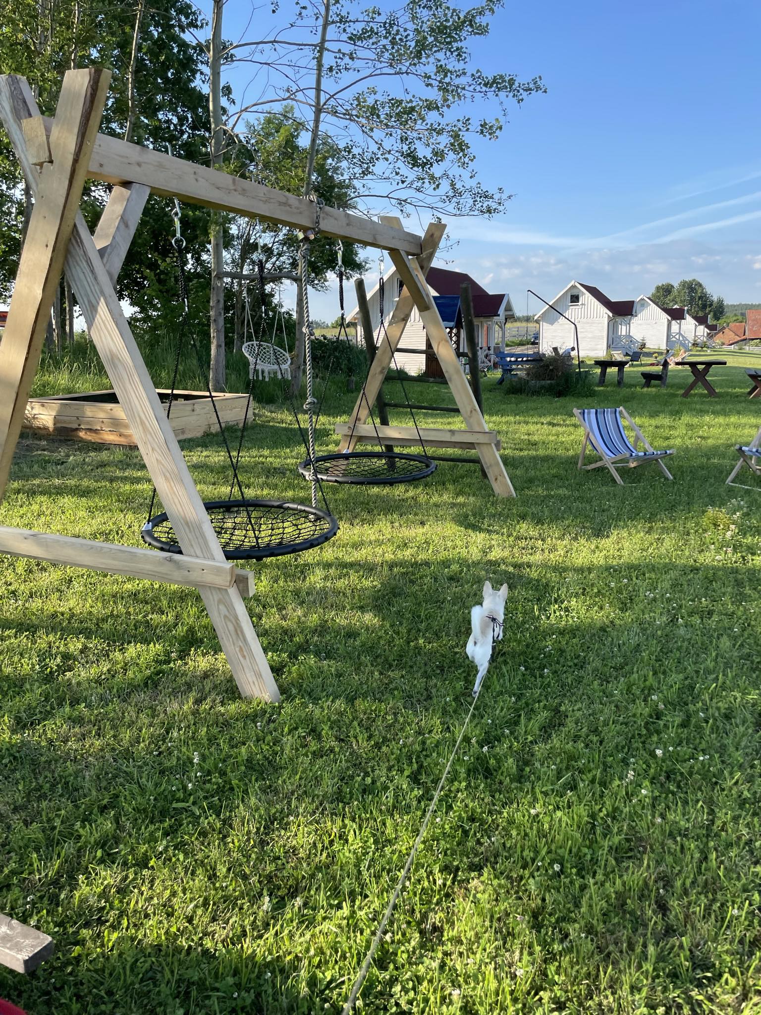 Gościom udostępniany jest gril oraz miejsce na ognisko. Parking jest bezpłatny na terenie obiektu. Ofertę obejmuje okres od kwietnia do października. Domki położone są w spokojnej, mazurskiej osadzie Przerwanki z dała od codziennego zgiełku. Dodatkowym walorem jest usytułowanie na wzniesieniu, z którego rozciąga się malowniczy widok na jezioro Gołdapiwo, odległość do jeziora oraz lasu około 400m.